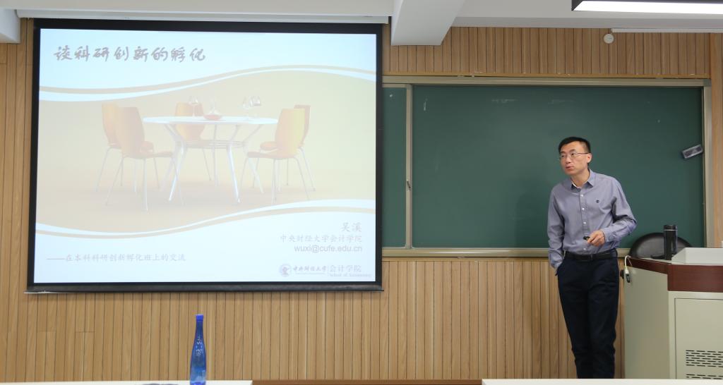 开班仪式后,太阳城集团官方网站院长吴溪教授为创新孵化班全体同学上了一堂生动的学术启蒙课。作为本次孵化班系列课程的第一讲,吴溪院长以过往一位学员的事迹为切入点,讲述了明确学习目标的重要性。他指出,学术研究和科学创新的过程充满了挑战和不确定性,只有明确自己的追求,对科研有着发自内心的热爱,才能在学术科研的路上坚持走下去。吴溪院长介绍创新孵化班的来源,培养模式以及一路走来的历程。他认为,孵化班的培养目的是激发同学们的科研兴趣,由学院提供合适的培养环境,同时给足同学们自由探索的时间,摒弃揠苗助长的培养方式,着重培养学生的思维创新的综合能力。在此目标规划下,吴院长指出,同学们应该打好专业基础,明确会计分录背后的思想,开发自己的好奇心,从而找到自己感兴趣的领域,培养自主探索能力并且不要过度开发自己。最后,吴溪院长寄语大家要享受科研、常学常新,在创新孵化班收获属于自己的“科研初心”。