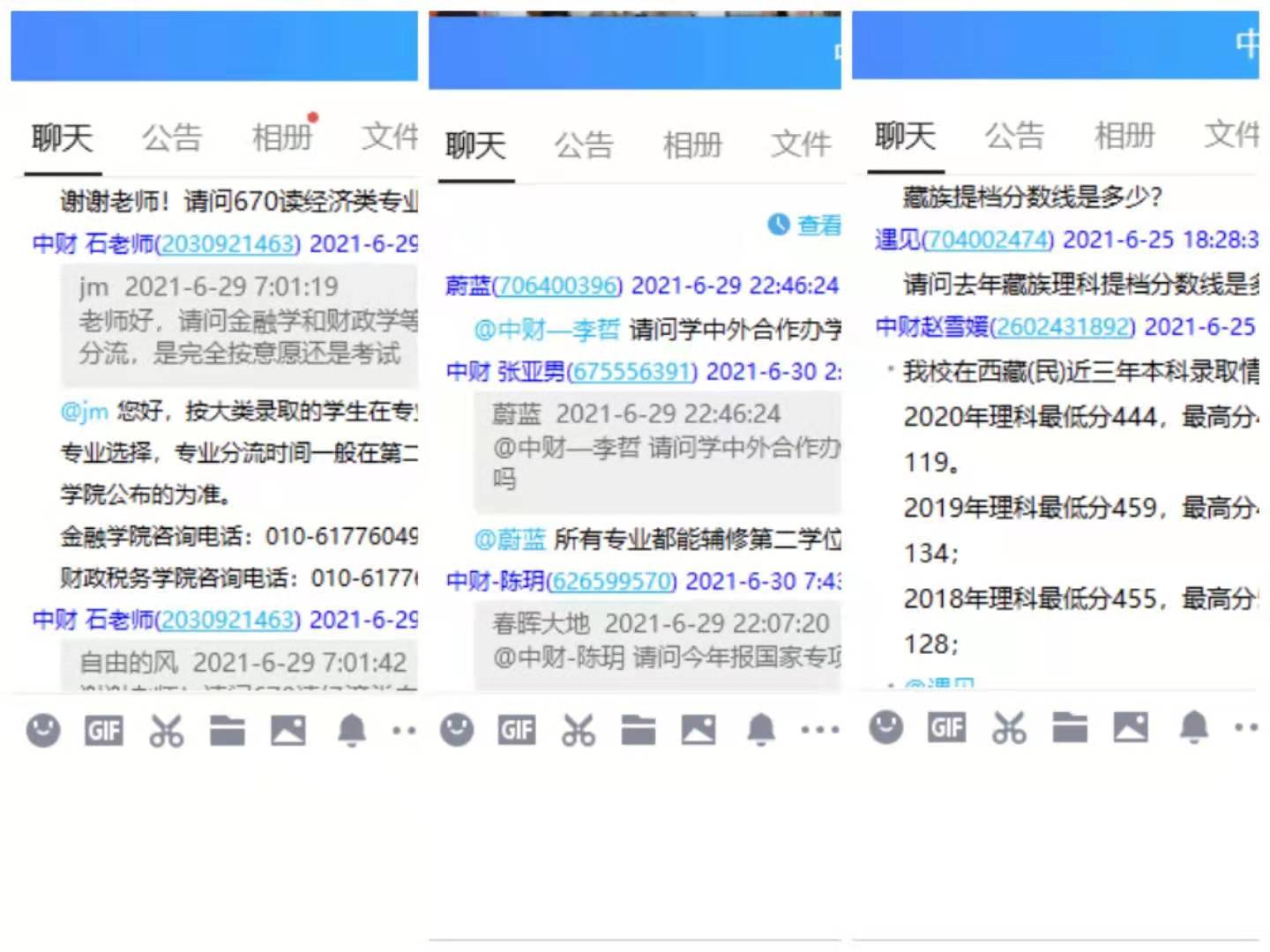 除现场咨询团队外,谢贵荣老师和孙健老师为四川、重庆和西藏考生开设了线上高招咨询讲座,学院组建了线上QQ咨询团队和电话热线咨询团队,自6月23日至7月5日,24位老师轮流在线,负责四川、重庆、西藏招生咨询QQ群的线上咨询工作,4位电话热线值班老师同时在线,负责接听考生和家长的电话,宣传太阳城官网的招生政策,耐心解答家长及考生的问题,记录考生信息。