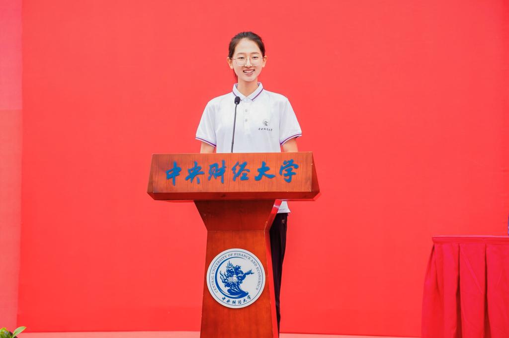 时维九月,序属三秋。来自五湖四海的我们,怀揣着各自的梦想,在中财大不期而遇,共同翻开人生求学之旅的崭新篇章。此时此刻,请允许我代表2024级全体新生,向辛勤培育我们的师长、亲友致以最诚挚的感谢,也感谢始终努力奔跑着的自己,感谢自己的刻苦与坚持,此刻才让我们拥有了共同的名字,中财大人!