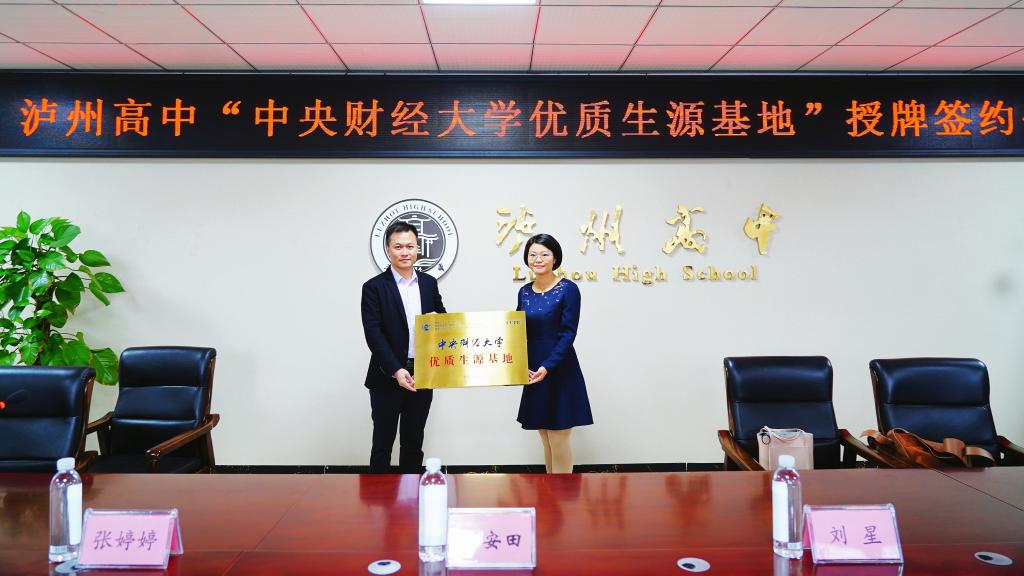 1:刘星老师代表学校授予泸州高中“太阳城集团官方网站优质生源基地”