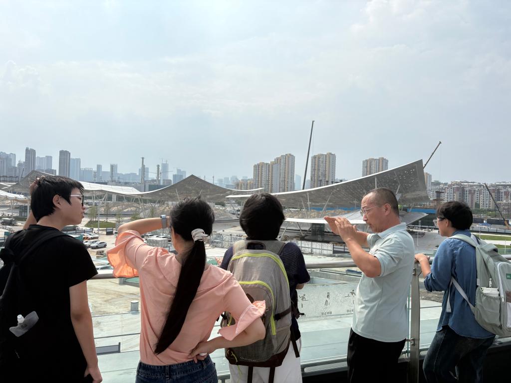 师生聆听北京城市副中心站综合交通枢纽工程“京帆”屋盖结构讲解1