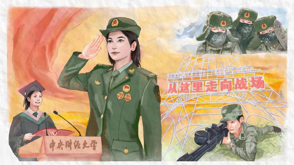 中华儿女多奇志,不爱红装爱武装。我们感动于周晓妮同学的拼搏进取、坚忍不拔,她用实际行动发出了“强国有我,请党放心”的最强音,让刻有中财大名字的青春之花在祖国最需要的地方绚丽绽放;更希望有更多的同学能够如她一般,带着仰望星空的勇气和脚踏实地的底气趁着心中有梦,勇敢追梦并成功圆梦,用奋斗书写自己无悔的人生篇章!