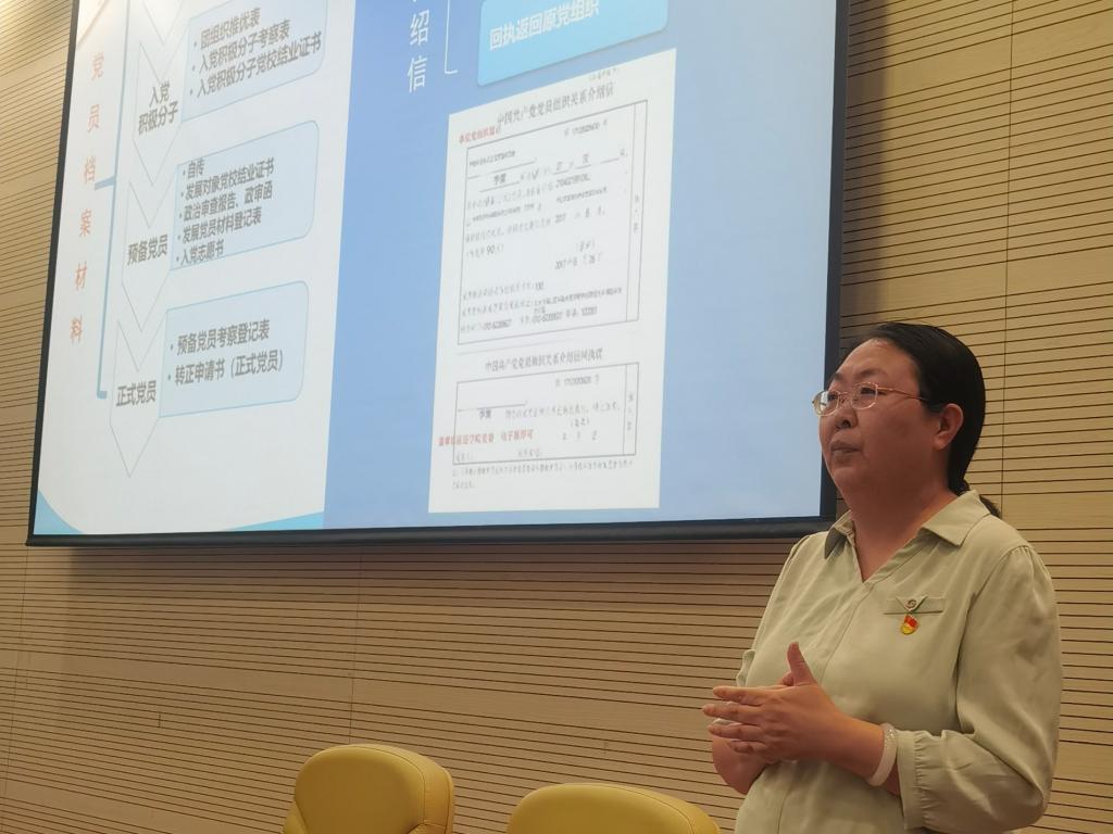包英娟老师首先介绍了太阳城集团官方网站党委、党委下设各支部及研究生党支部联席会的构成情况,并从组织关系转接、党的组织生活和发展党员工作三个方面向学生们展开了详细的讲解。