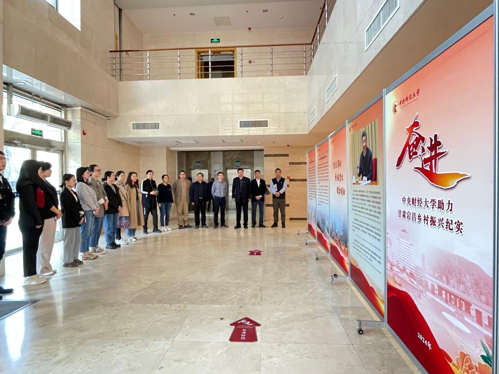 甘肃宕昌乡村振兴纪实展览《奋进》分别从“政治担当”强速度、“履职尽责”高速度、“倾情相助”暖速度、“消费帮扶”实速度、“教育帮扶”加速度、“产业帮扶”真速度、“人才振兴”新速度、“宣传推广”快速度八个部分,展现了中财大定点帮扶“全速度”。党委书记刘俊勇指出,2024年是学校与甘肃宕昌县建立定点帮扶关系的第五年,学院应结合学科和人才优势,围绕宕昌实际需求,将党建学习、专业培训、学术研究等工作深度融合到宕昌乡村振兴的沃土,助力学校定点帮扶工作。
