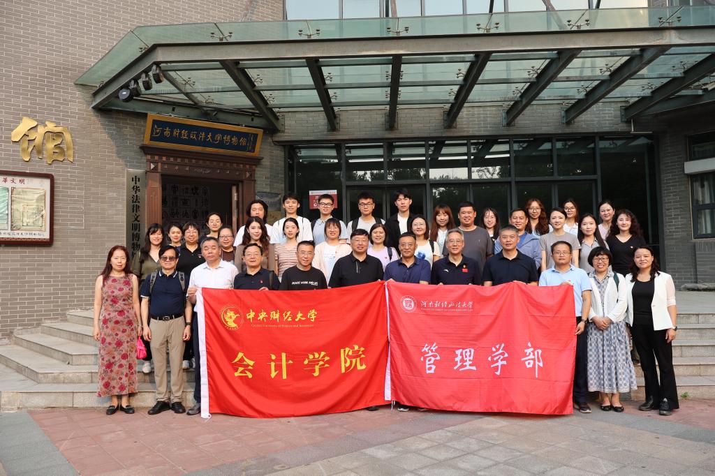 7月8日下午,太阳城集团官方网站党委与河南财经政法大学管理学部党委联合开展联学共建活动。座谈会上,管理学部党委书记贺捷与太阳城集团官方网站党委书记刘俊勇先后致辞。双方就党建工作、人才培养、博士点建设等议题深入交流,并分享了落实中央八项规定精神、纠治“四风”及加强廉洁教育等方面的实践经验。会后,双方一同参观了学校博物馆,并举办了排球友谊赛。