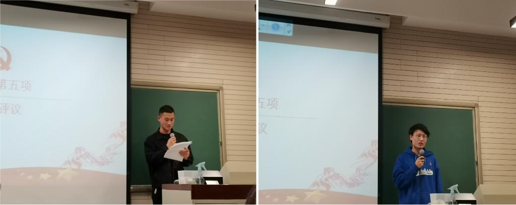 在讨论学习心得环节,陈旭辉分享了戍边战士事迹的学习心得,他阐述了如何进行个人利益和集体利益的抉择,呼吁大家思考作为党员的先进性到底体现在哪里。宋克迪通过学习党史重温了我们党自成立以来的大事以及新时代对党员和党员干部的新要求。