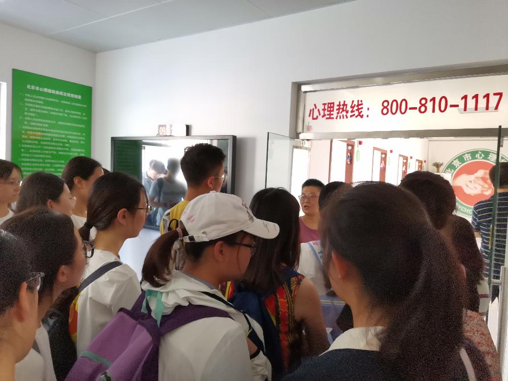 联欢活动后,回龙观医院临床三党支部负责人带领同学们参观了北京市心理援助热线和艺术行为治疗中心。