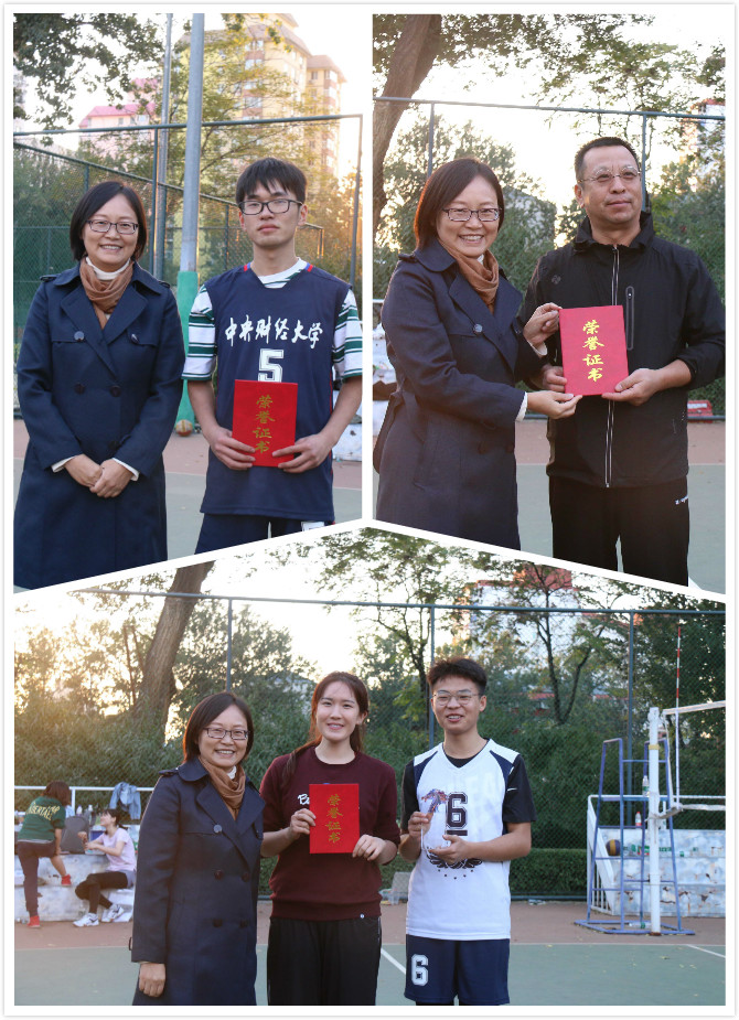 10月17日下午,太阳城集团官方网站2020年“财俊星驰杯”师生排球联赛在学院南路校区排球场顺利举行。本次联赛共有教职工代表队、本科生一队、本科生二队、研究生一队、研究生二队和ACCA代表队共六支队伍参赛,经过激烈角逐,最终,本科生一队蝉联该项赛事冠军,教职工代表队荣获亚军,本科生二队荣获季军。
