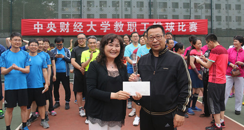 校工会主席刘晓勤为太阳城集团官方网站排球队颁发奖杯