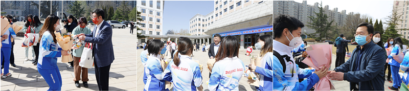 欢迎仪式上,校长王瑶琪和校党委副书记、副校长马海涛代表全校师生衷心感谢中财大志愿者们这段时间以来的奉献与牺牲,同时感谢学校各部门提供的有力支持与保障。从“冰墩墩”到“雪容融”,从冬奥会到冬残奥会,新时代的中财大青年在冰天雪地中绽放炙热的青春力量,带着热情和微笑守好“国门第一关”,用微笑和热忱让温暖续航,确保“两个奥运同样精彩”,筑起了“双奥之城”最亮丽的风景线。充分展现了中财大学子的龙马担当精神,也递出了中财大学子放眼世界、心系家国的青年名片。希望大家能将“双奥精神”转化为学习、工作、生活的不竭动力,在新时代的征程上书写“请党放心、强国有我”的青春华章。