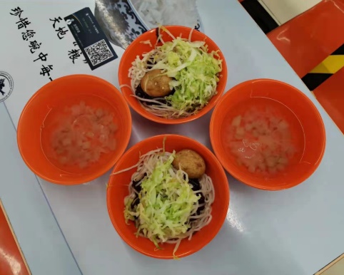 车长向每位志愿者发放用餐券,志愿者们来到阔别已久的食堂,享用为他们特别准备的接风“暖心面”,重温“家”的味道。