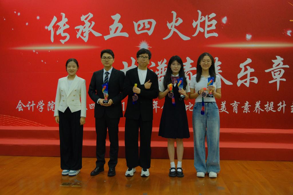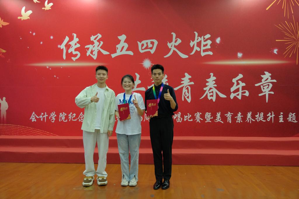 经过激烈比拼,会计24-2班、会计24-3班、会计24-4班、24ACCA班、24双培班获得“团队协作奖”,会计24-5班、会计24-6班、24MPAcc-F5班获得“青春风采奖”,会计24-1班、24MPAcc-F2班获得“青春律动奖”,24MPAcc-F1班获得“时代新声奖”和“最佳舞台奖”会计24-4班刘睿哲同学获得“最佳指挥奖”。