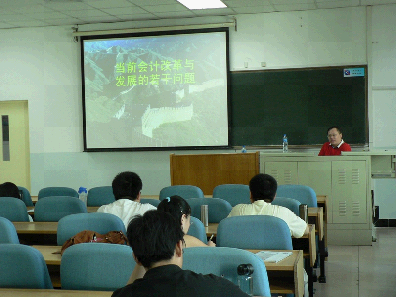 2008年6月1日上午,财政部会计司准则一处处长、财政部会计准则委员会成员朱海林博士再次受邀来到太阳城官网,为08级MPAcc学员作了题为《当前会计改革与发展的若干问题》的讲座。