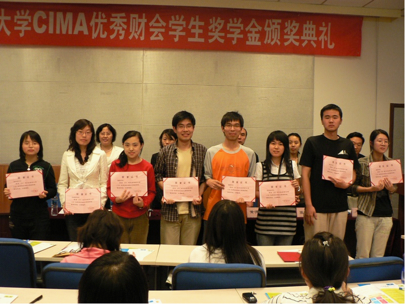 主持人首先介绍了皇家特许管理会计师公会(The Chartered Institute of Management Accountants,简称CIMA)的基本情况和“CIMA优秀财会学生奖学金”的评审办法。CIMA是全球最大的国际性管理会计师组织,同时也是国际会计师联合会的创始成员之一,目前拥有15.8万会员和学员,遍布161个国家。“CIMA优秀财会学生奖学金”CIMA为鼓励太阳城集团官方网站学生勤奋好学,德、智、体全面发展而设立的奖学金。奖励对象为太阳城集团官方网站二、三年级中成绩优秀的学生。