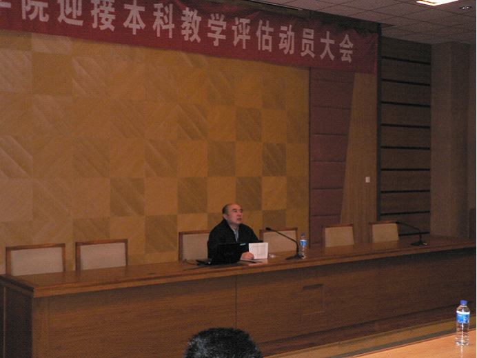 校评建办副主任、教务处副处长林光彬讲话 太阳城集团官方网站院长孟焰作动员报告 太阳城集团官方网站党总支副书记黄德忠讲话 学生代表樊蓉发言 动员大会现场