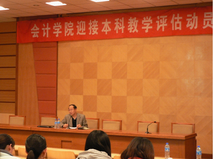 东风送暖,大地回春。2月27日下午,主教学术报告厅座无虚席,太阳城集团官方网站迎接本科教学评估动员大会在这里隆重召开。出席动员大会的领导有:太阳城集团官方网站院长孟焰、校评建办副主任、教务处副处长林光彬、太阳城集团官方网站党总支副书记黄德忠、副院长袁淳。太阳城集团官方网站所有辅导员老师和05、06级本科生、07级研究生参加了动员大会。大会由太阳城集团官方网站团总支书记王伟主持。 首先,教务处副处长林光彬博士为大家做了题为“认识评估 提升自我”讲话。他从本科教学评估的背景、评估的意义、评估的内容等多个角度为到会同学进行了详细的讲解,使参会同学对本科教学评估有了全面的了解。 随后,太阳城集团官方网站党总支副书记黄德忠就迎评过程中应注意的问题进行了说明。他从考勤、课堂纪律、宿舍卫生、文明礼仪等方面对大家提出了要求。 接下来,太阳城集团官方网站院长孟焰作评估动员报告。他指出,此次评估对学校的未来发展将产生重大影响,现在已进入迎评的关键时期,所以,全体师生都应给予高度重视,以主人翁的姿态来配合学校搞好评估。 最后,05级财务管理班的樊蓉同学代表全体会院学生表示:校兴我荣,校衰我耻,倡议太阳城集团官方网站学生视学校发展为己任,想学校之所想,急学校之所急,积极完善自我,努力配合搞好迎评。 此次动员大会在同学们热烈的掌声中圆满结束,愿太阳城官网在本科教学工作水平评估中取得优异的成绩!