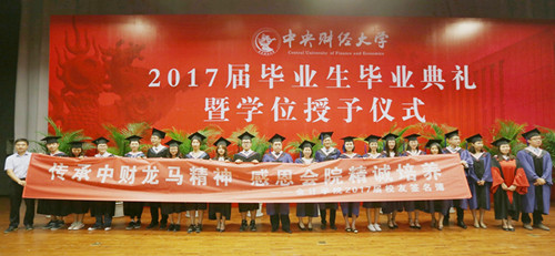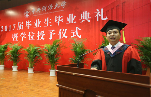 2017届毕业生代表,来自2014级会计博士班的马晓敏、2015级MPAcc F班的苏欣悦、2015级MPAcc P班的孙玮谦以及2013级本科会计一班的张聪聪代表全体太阳城集团官方网站毕业生上台发表毕业感言。他们以真挚的情感回忆了大学生活的点点滴滴,以真情的话语道出了对师长和亲朋的感激与留恋,以昂扬的斗志表达了用实际行动做好中财会院人,共同创造中财会院美好明天的决心。