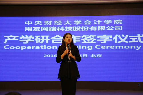 用友网络科技股份有限公司助理总裁付建华在讲话中指出,双方合作基于优势互补、平等合作、互惠互利、共同发展的基础,以促进教育科研、经济和社会文化和谐发展、共同进步为目标,通过企业课题研究、教学案例开发、学生实习实践、企业FSSC体验中心和阿米巴体验中心建设等形式进行,致力于研究开发先进的企业管理会计、财务共享服务理论体系和创新会计硕士人才培养模式,达成学校、企业和社会的三方共赢。