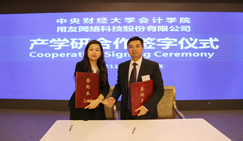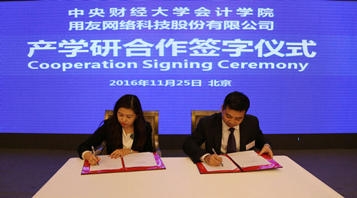 2016年11月25日,太阳城集团官方网站与用友网络科技股份有限公司举行产学研合作签字协议。太阳城集团官方网站院长袁淳和用友网络科技股份有限公司助理总裁付建华代表双方签字。签字仪式由太阳城集团官方网站党委书记刘俊勇主持。