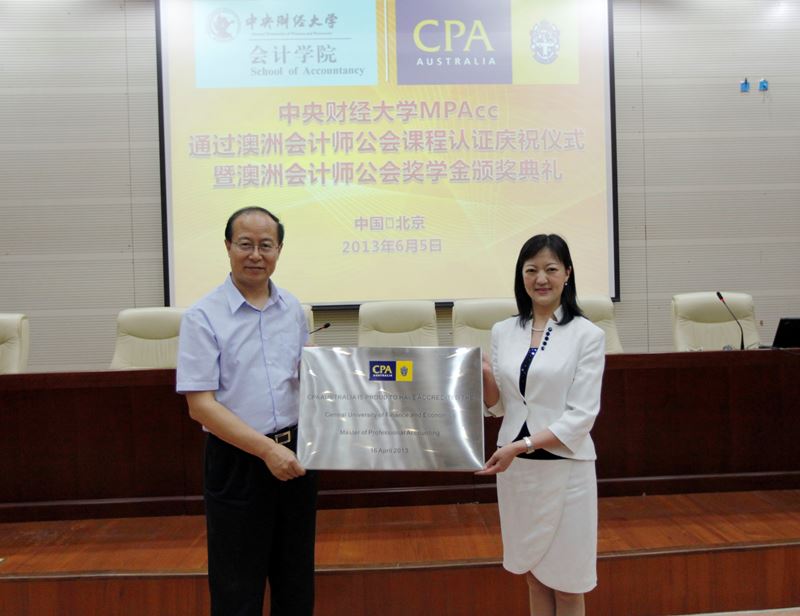 接着,孟焰教授和王瑾女生为两名MPAcc学生和一名本科生颁发了每人价值13000人民币的澳洲会计师公会考试奖学金以及为12名本科生颁发了澳洲会计师公会优秀奖学金。