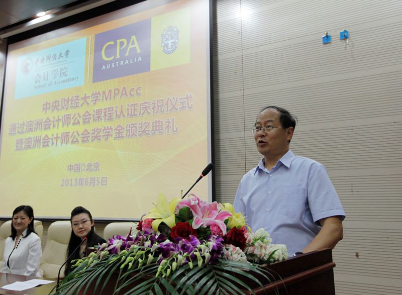 6月5日下午,太阳城官网MPAcc通过澳洲会计师公会课程认证庆祝仪式暨澳洲会计师公会奖学金颁奖典礼在学术会堂202报告厅举行。澳洲会计师公会北京代表处首席代表王瑾女士、 澳洲会计师公会北京代表处业务拓展经理洛聪聪女士、澳洲会计师公会会员代表(中国电力建设集团公司资金管理部副主任)杨天福先生和太阳城集团官方网站院长孟焰教授、副院长刘俊勇教授、学生工作办公室主任王伟以及100多名MPAcc学生和获奖学生参加了此次活动。