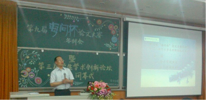 2011年6月10日晚7点,第九届“海问杯”论文大赛答辩会暨第三届学生学术创新论坛闭幕式于沙河校区七号学院楼115报告厅顺利举行。