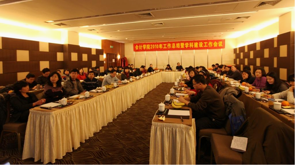 孟院长首先从领导班子的建设,教学科研工作与学科建设工作,学生工作,MPAcc、在职研及培训项目工作,行政、工会及校友工作等五个方面对学院2010年的发展情况做了总结汇报。