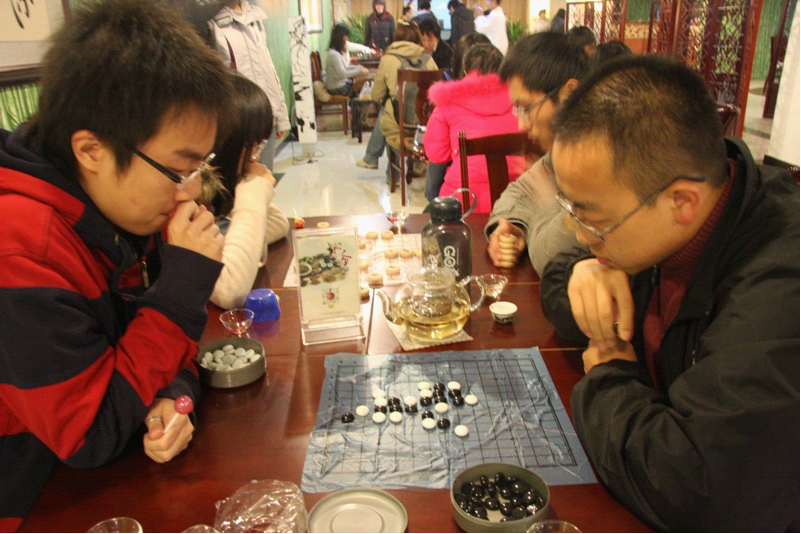 第一环节为“棋茶交汇,文化传承”。以棋为主,以茶为引,以竞赛为形式,以熏陶为目的,11月10日晚,“棋茶烩”主题活动在沙河校区主教“欣逸斋”拉开序幕,现场座无虚席。主持人以古典韵味浓厚的开场白宣布活动开始,一名琴师,两桌象棋,三桌围棋,四杯香茗,来自各个学院的同学们早已落座在棋盘边上,开始举棋对决,更有前来观战者,坐定不语。古筝名曲声声入耳,幽幽茶香沁人心脾。主办方精心摆设的象棋经典残局被逐一破解,围棋进退攻守不分上下,五子棋五星连珠屡见不鲜。同学们在竞技中触摸深厚传统文化,感悟中国传统棋类竞技项目的博大精深。
