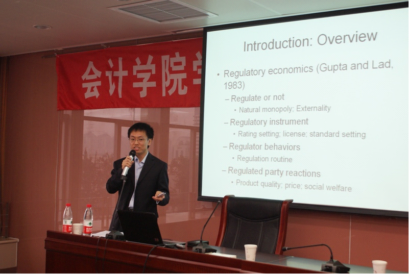 2010年10月20日下午,长江商学院(Cheung Kong Graduate School of Business)研究学者徐永新博士来我院作了题为“市场失灵与资本市场会计审计监管”的学术报告。作为太阳城官网“211工程”三期重点学科建设项目的一部分,太阳城集团官方网站陆续邀请会计与财务研究领域的国内外年青学者来我院进行学术交流。