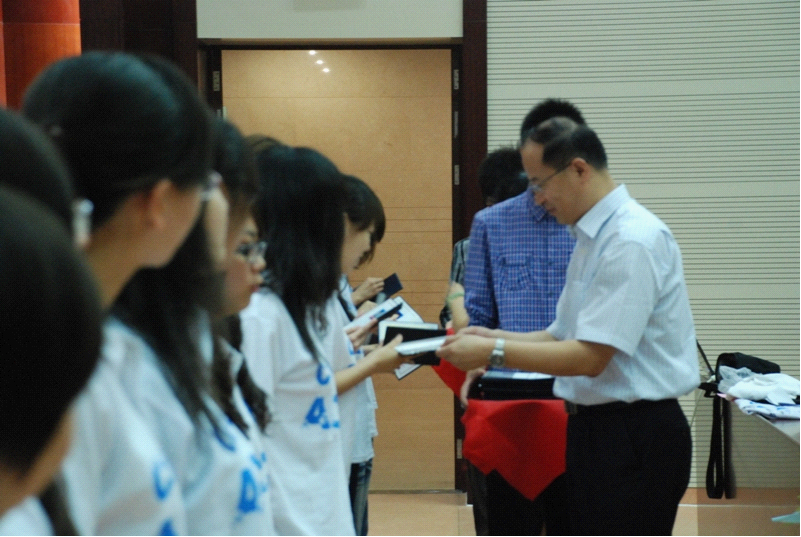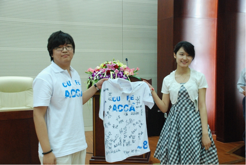 接着,08级学生代表将象征着ACCA项目班精神的08级班服传承给09级学生代表,希望09级的同学们能继续发扬ACCA项目班的优良传统,取得更加优异的成绩。