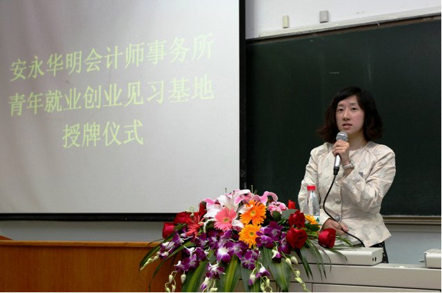 王静女士对学院以及学校为该基地的申报所做的大量工作表示衷心的感谢,并表示安永会珍惜这一殊荣,一如既往的支持太阳城集团官方网站就业创业工作的发展,为学生们的实习、就业工作做出就有的贡献,同时,她也希望有更多的学弟、学妹们加入到安永会计师事务所。