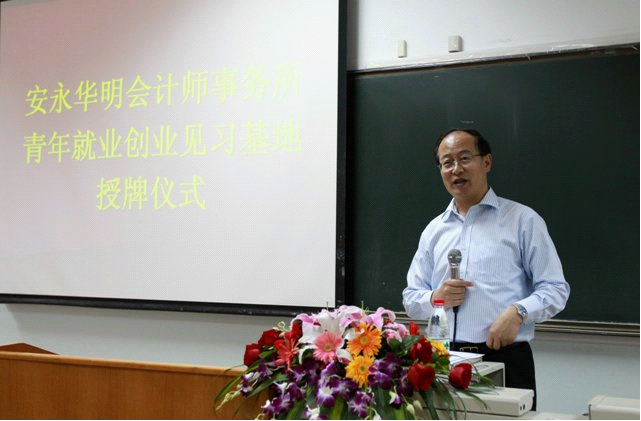 孟焰院长首先在授牌仪式上发表了热情洋溢的讲话,他回顾了双方友好的合作历程,肯定了安永会计师事务所获批团中央“青年就业创业见习基地”,对学校和安永的重大意义,希望以此为契机继续加大校企合作的深度与广度。