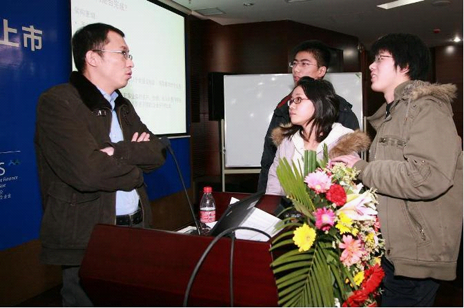 关于企业在资本市场上市这一话题陈先生谈了以下五个方面:成功上市要素、上市地点的选择、上市条件、参与上市的专业机构和一般上市常见问题。在每一部分陈先生都结合了他工作的实际经验,他幽默风趣的讲解使同学们对资本市场有了更加深入的认识,也对发行上市的整个过程有了一个全面的了解。