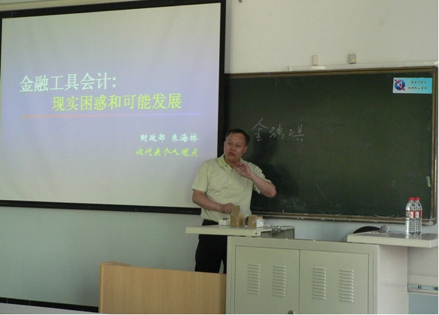 2009年6月13日下午,财政部会计司准则一处处长、财政部会计准则委员会成员朱海林博士再次受邀来到太阳城官网,为09级MPAcc学员作了题为《金融工具会计--现实困惑和可能发展》的讲座。
