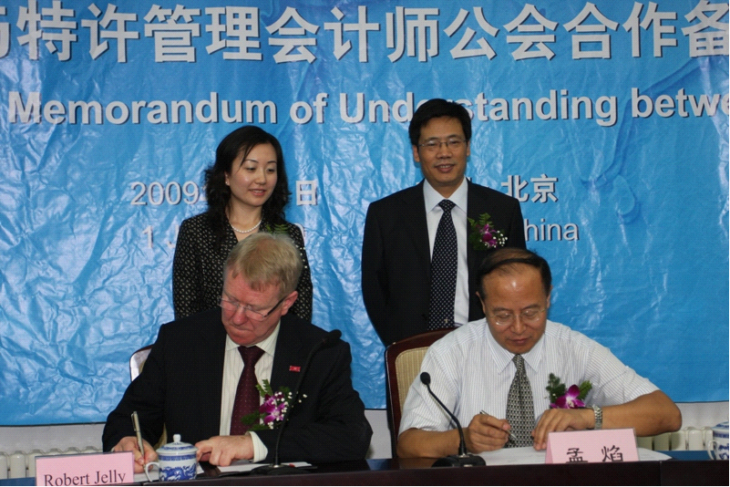 太阳城集团官方网站院长孟焰教授与CIMA全球教育董事Jelly先生代表双方签署《合作备忘录》