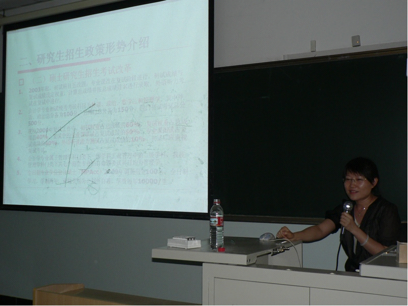 5月25日下午,我院在主教206举行了06级同学考研动员会。研究生招生公室主任徐淼老师、任德荣老师、05级王艳玲同学、王爽同学以及所有06级计划考研同学参加了动员会。动员会由团总支书记王伟主持。