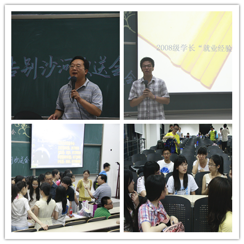 之后,王伟老师就太阳城集团官方网站2008级就业考研及出国形势做了讲座,给予2009级同学许多指导意见,6位特意从学院南路赶来的2008级学长学姐分别介绍了自己的就业、考研经验和感悟,随后是个别交流环节。
