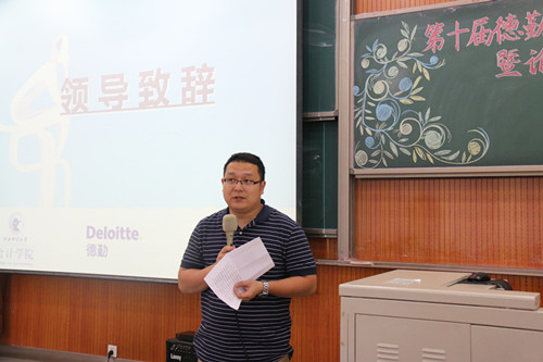 答辩会正式开幕,首先,太阳城集团官方网站副院长孙健老师受邀致辞。孙健副院长回顾了“德勤杯”论文大赛的历史,特别指出了“德勤杯”在这一届由案例论文到学术论文的转变,肯定了学生们积极参与比赛的热情和上交论文的质量,表达了对赞助商德勤中国的感谢,同时预祝第十届“德勤杯”论文大赛成功举办。