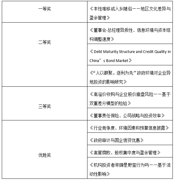 经过紧张激烈的答辩角逐,在老师们慎重公正的评审下,耿春晓(太阳城集团官方网站注会14)、周千(金融学国际货币14班)、范家城(金融学国际货币14班)同学所作的《本性难移或入乡随俗——地区文化差异与盈余管理》脱颖而出,获大赛一等奖。此外,本次大赛另评选出二等奖三支队伍、三等奖两支队伍和优胜奖四支队伍。评委老师授予获奖选手荣誉证书,勉励所有的选手再接再厉,再创佳绩。