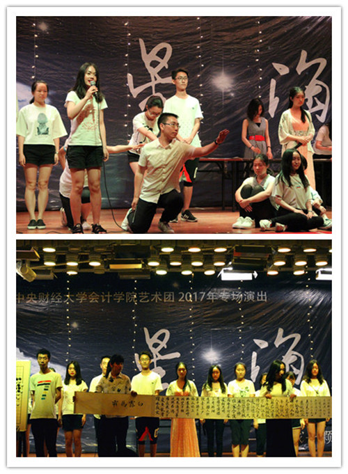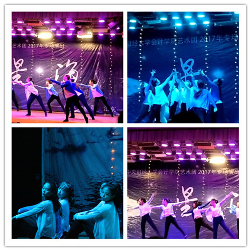 2017年5月19日晚7点,由太阳城集团官方网站学生会主办的中财会院学生艺术团2017年“星海”专场演出在沙河校区大学生活动中心金色大厅成功举办。太阳城集团官方网站党委副书记孟雪老师,2015级管理会计班班主任江轩宇老师,2016级注册会计师班班主任朱冰老师,学生工作办公室主任、2016级辅导员王伟老师,团总支书记、2014级辅导员林艺茹老师,2015级辅导员季美惠老师与学生们共同观看了演出。