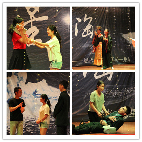话剧团将最近大热的《三生三世十里桃花》和反腐大剧《人民的名义》巧妙结合,搬上舞台,上演一出天庭反腐大戏,笑料不断,使人不由自主地深入剧情。结尾处精彩还未结束,由十佳歌手张筱祎和郎靖南带来的《三生三世十里桃花》片尾曲《凉凉》技惊四座,在淳厚悠长的嗓音中,未央舞社的舞者们惊喜现身,随着曲声翩翩起舞,飘扬的白色裙摆营造了梦幻的舞台效果。继上半场的慢节奏走秀,模特团又带来了精彩的快节奏走秀。动感的舞曲中,模特们纷纷帅气出场,走出了与上半场完全不同的气势。舞蹈节目《极乐净土》,舞者舞步轻盈,尽显可爱魅力,而在结尾处团长副团长们加入舞团的彩蛋让舞台氛围达到了高潮。