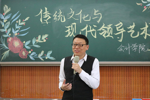 讲座伊始,赵老师结合自身的经历,从不合规矩的事情不做、成本理念、投资理念三个方面论述了会计对人的观念和价值观的影响,并引用泰戈尔的诗句“如果你因为错过太阳而哭泣,那么你也将错过星星”及生动有趣的例子告诉同学们:在学习过程中不仅要学习方法,还要注重培养思维方式。而提供更丰富更多样的思维模式、拥有更多看待世界的角度更是我们学习传统文化的意义所在。