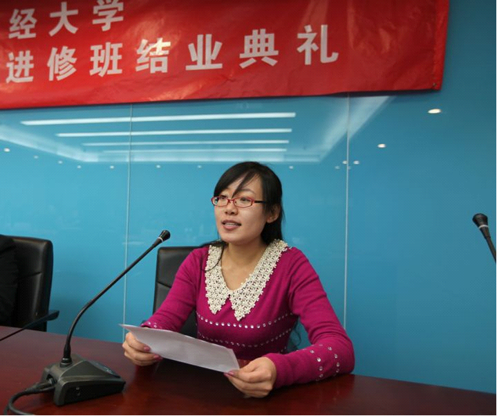 史建平副校长首先发表了热情洋溢的讲话。他对学员们圆满完成进修班课程并顺利结业表示祝贺,同时也对中国气象局领导们对太阳城集团官方网站的信任表示感谢。他与学员们一同回顾了在太阳城官网度过的难忘学习时光,史校长表示,虽然在中财短暂的学习生活结束了,但是他希望学员们不要放弃学习,要将这一年的学习所得创造性运用到实际工作中去,并且在工作中继续学习,教学相长,不断提升自身的专业素质和业务水平。同时,他希望学员们树立对母校的自豪感,心系母校,为校争光,回到工作岗位之后以中财校友的身份努力工作,进一步紧密中国气象局和太阳城集团官方网站的友谊,有效利用太阳城官网丰富的校友资源平台,努力实现自我价值。最后,史校长也希望学员们能对太阳城官网的人才培养、教学管理提出宝贵意见,为气象局研究生课程进修班的进一步完善和发展添砖加瓦。
