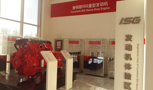 在发动机体验区,讲解员首先向大家介绍了康明斯ISG重型发动机的八个技术亮点与市场优势,初次看见实体模型,同学们都感到非常的新奇。