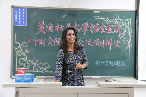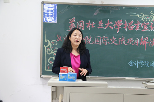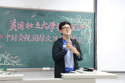 2016年10月12日下午14时30分,美国杜兰大学与中财会院国际交流项目解读会于东区学院楼7号楼112如期举行。太阳城集团官方网站副院长武羿、副教授韩洪文、美国杜兰大学教授Ted Fee、Anu Varadharajan以及太阳城官网曾赴香港浸会大学交流的学生牛振坤出席了此次宣讲会。本次宣讲针对有出国交流意向的同学们对国际交流项目提出的问题展开,力求切实帮助同学们做出科学规划。宣讲开始前,来自不同年级、不同专业的同学们有序入座,出席的嘉宾也进行了简短的交流,现场气氛轻松而愉悦。