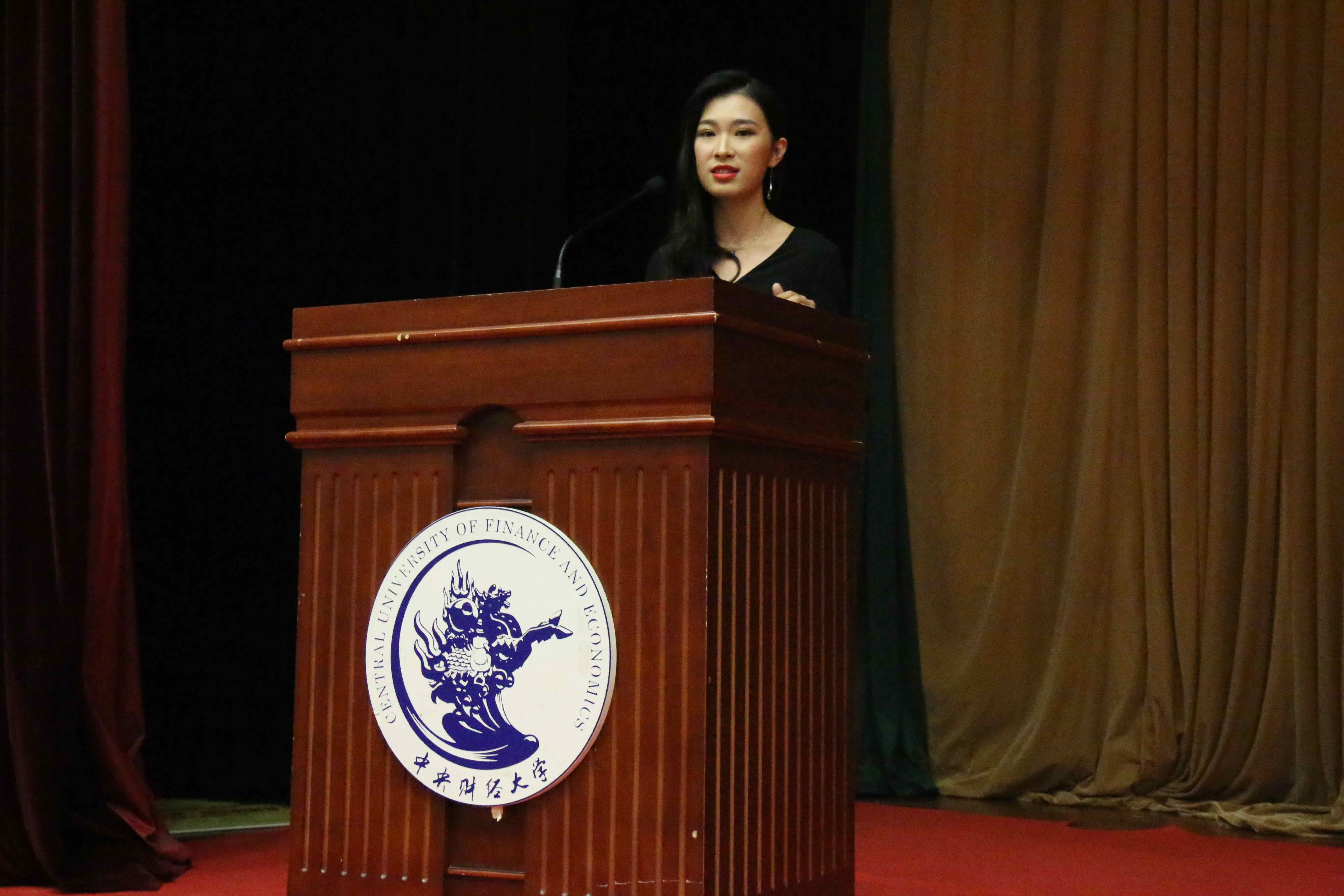 2019级会计专硕(非全日制)陈克勤同学作为研究生新生代表发言。她从火遍全网的阿中事件入手,引导现场同学思考00后力挺祖国底气所在:我国强大的经济实力和坚忍的民族气节。民族复兴的伟大任务少不了经济复兴的支持。她勉励所有同学秉持“忠诚、团结、求实、创新”的校训,怀着对脚下这片土地的自信,努力成为经济发展的中流砥柱。