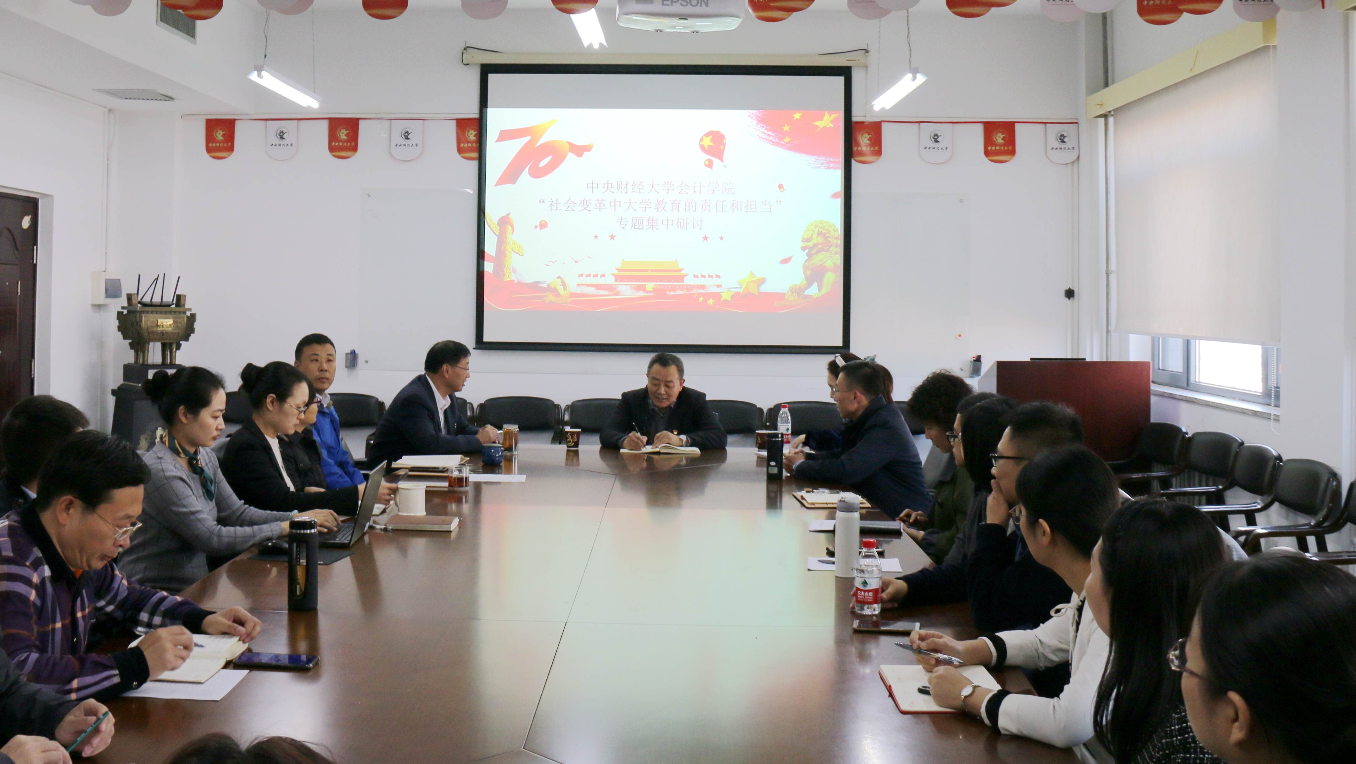 本次研讨会围绕着“社会变革中大学教育的责任和担当”专题展开,重点探讨了太阳城集团官方网站如何投身高等教育变革与“双一流”建设,以及会计学科建设中的优势学科凝练与学科方向规划问题。
