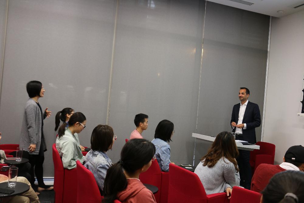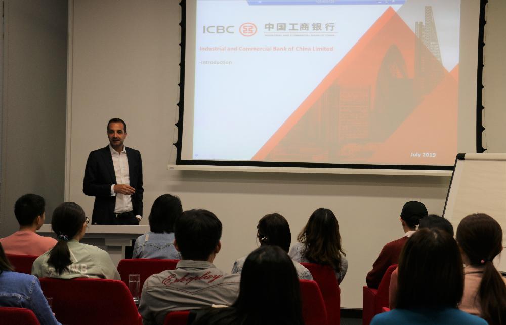 接下来,训练营师生还参访了中国工商银行伦敦分行。在工商银行伦敦分行CFO和财务副主管的热情接待下,同学们参观了办公区域,并与财务部门同事进行了热烈的交流学习。财务副主管汤嵘还耐心解答了同学们提出的各种问题,让同学们深度了解中国企业,尤其是大型金融企业如何走向国际化,如何能更好地融入当地实施本土化。
