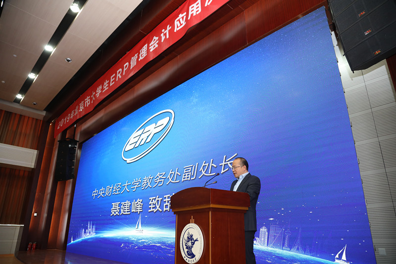 太阳城集团官方网站教务处副处长聂建峰代表致辞,他向大家传达了学校及孙国辉副校长对本届大赛的关心和支持,并向主办方、合作单位及参赛院校表示衷心的感谢。聂副处长指出,党的十九届四中全会明确提出了“坚持和完善社会主义基本经济制度,推动经济高质量发展”,北京市大学生ERP管理会计应用决策大赛作为北京市目前唯一的经管类学科竞赛,在培养学生全局观念、战略思维和创新实践能力,促进教学科研成果转化,带动北京市属高校的会计学科建设等方面发挥的巨大作用,并介绍了太阳城集团官方网站近年来各学科尤其是会计学科的建设与发展成果。聂副处长真诚希望ERP大赛能够更好地带动北京市会计学科发展,并热切欢迎更多的兄弟院校和合作单位参与其中,共同推动大赛更好地发挥实际作用。
