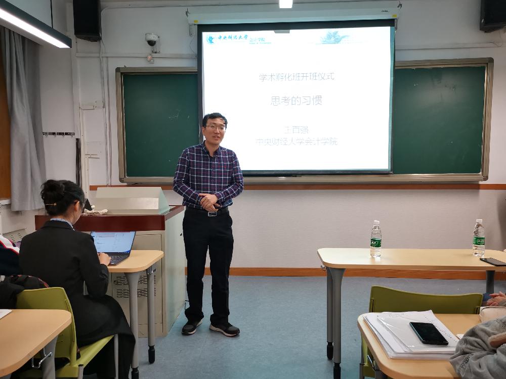 王百强老师简要地介绍了课程的内容与要求。随后王老师用四个案例启发同学们发散思考,并加以点评,以此告诉大家每一件事情、每一种行为自有一套逻辑支撑的理论。研究社会科学时,黑格尔的至理名言“存在即合理”是贯穿在科学体系中的一种观念。而作为社会科学的研究者,便是在认定事实背后理性的存在时寻求解决办法。所谓理性,有三个关键点:当时的时点上;他/她认为;在给定约束条件下。因此,一些看似不可理喻的冲动行为往往是效用函数在不同时点上发生变化所致。随后,王老师又以是非洲农民的种植选择和秘鲁农民的毒贩故事为引,告诉大家行为是踩着理性的阶梯展露给外界的表象,欲解其道,必先知其理,悟其真。王百强老师用内容丰富且充满思辨的第一课,让二年级的创新孵化班同学初步了解了社会科学,了解会计学研究,在同学心中埋下了学术创新的种子。